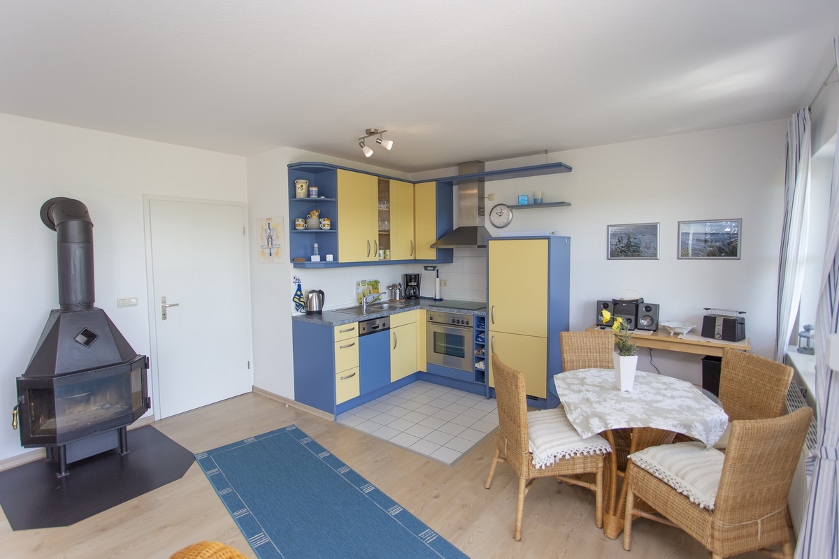 Schlafzimmer mit Doppelbett, geräumiges Wohnzimmer, SAT-Flachbild-Fernseher, WLAN, Radio/CD, Essecke mit offener und voll ausgestatteter Küche (Spülmaschine, Kühlschrank mit Gefrierfach, Cerankochfeld, Umluftbackofen, Mikrowelle), Bad mit Dusche und WC (2022 komplett saniert), bodentiefe Fensterfront zur Terrasse mit Gartenmöbeln und Grill, PKW-Stellplatz vor dem Haus.